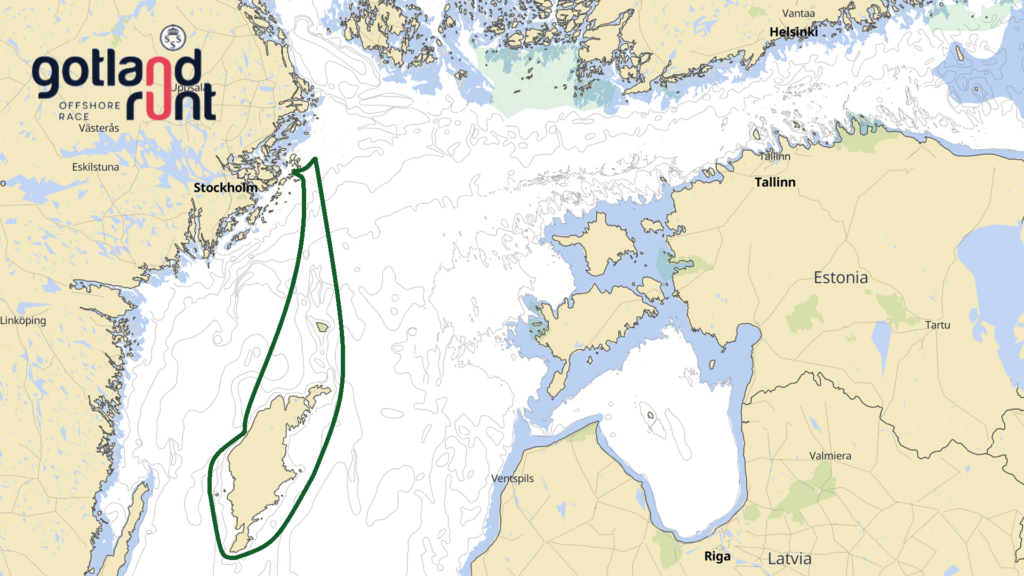 Das traditionelle Gotland Runt Offshore Race, organisiert vom Königlich Schwedischen Segelclub KSSS im 89. Jahr, startet am Sonntag nach Mittsommer von Sandhamn aus. Vom Ausgang des Stockholmer Schärengartens geht es für die Yachten zunächst nach Svenska Högarna im Nordosten. Dort wendet sich die Flotte nach Süden in Richtung Gotska Sandön und Gotland, die beide an Steuerbord bleiben. Nach Runden der Tonne Hoburg Rev führt der Kurs nordwärts nach Visby, wo eine Regattatonne direkt vor der historischen Altstadt zu nehmen ist. Es folgen 95 Seemeilen bis zum Leuchtturm Almagrundet und ein Sprint von weitern 10 Seemeilen bis ins Ziel vor Sandhamn für eine Gesamtdistanz von gut 350 Seemeilen.
